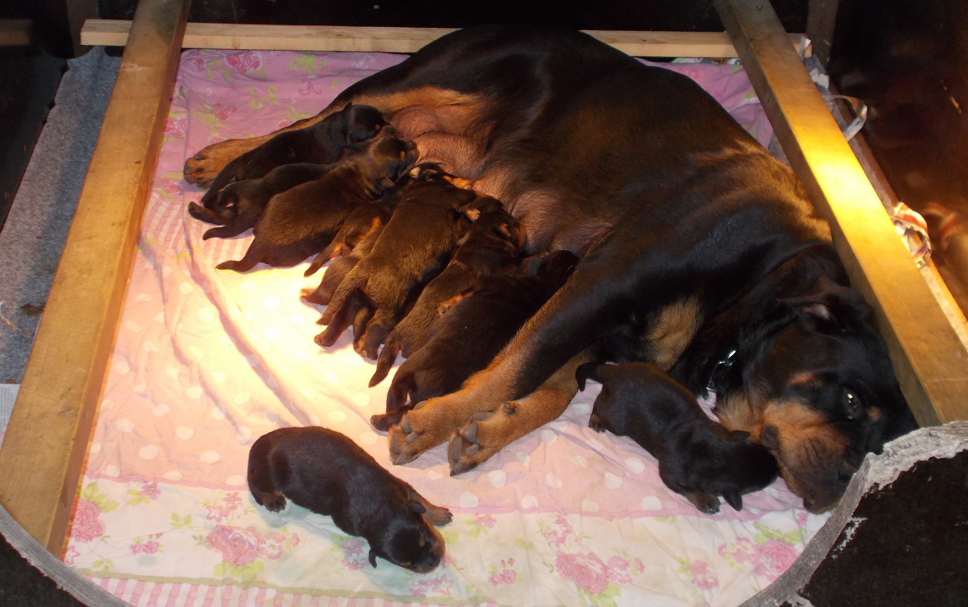 De pups laten we in huis geboren worden. Daar is het lekker warm en kunnen we ze goed in de gaten houden. Maar belangrijker nog: het gedrag van de pup wordt bepaald door de genetische aanleg en de omgeving waar ze in opgroeien.
